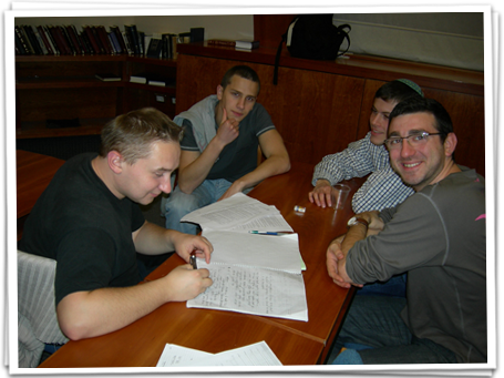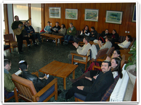 Our educational goal is to give these young students the tools to help them define their own Jewish identities. They study classical texts from the Bible or Rabbinic works and discuss topics that range from the holidays, the Jewish calendar, to Kashrut, themes in Jewish history, Jewish ethics, Bible and Jewish philosophy. Our goal is that they be proud of being Jewish and Israeli and find some meaning in their heritage as well as to make new friends and have a good time. The program meets twice a week on campus at a designated room (usually the campus synagogue or a library) where we hold the group study sessions. Each session begins with a light supper. Apart from the small group discussions, there is a frontal lecture once a week. There are three to four weekend retreats a year and special events to mark Chanuka, Tu Bishvat, Purim, a model seder before Pesach, Yom Hashoah lecture by a survivor, Yom Hazikaron lecture by an IDF officer, Israel Independence day celebration, Lag Ba’omer bonfire and a pre-Shavuot learnathon. There are also a few day field trips as well.